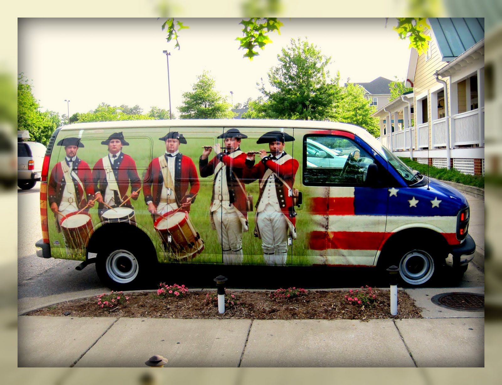This van, adorned with a fife and drum corps mural, is parked outside the Williamsburg General Store on Richmond Road. It's a great advertisement for the corps and very eye catching to passersby.